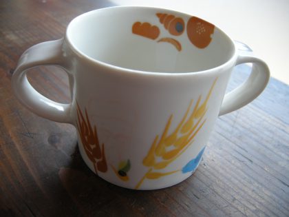 パン屋さんのお友達に赤ちゃんが生まれたので・・とお祝いにご依頼いただいた両とってのマグです。