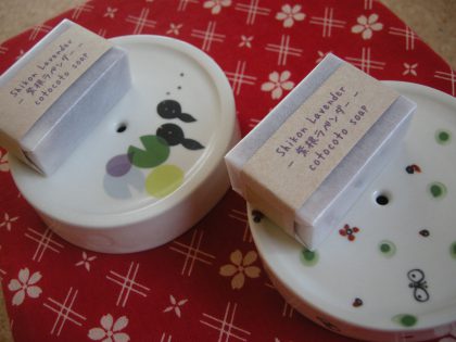 ということで作った、小さなソープディッシュと、近くで手作り石鹸を作っているcotocotoさんのミニ石鹸のセット。
