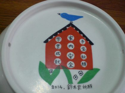 家族の1年の願いを盛り込んだ絵皿をご依頼頂きました。